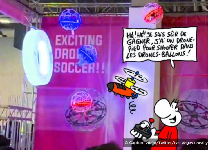 Il a été présenté lors du CES de Las Vegas, aux États-Unis. Le CES est un salon consacré aux nouveautés technologiques. Un nouveau « sport » fait fureur en Corée du Sud, le pays où il a été inventé : le Drone Soccer. Il s’agit d’une sorte de football… avec des drones ! » …